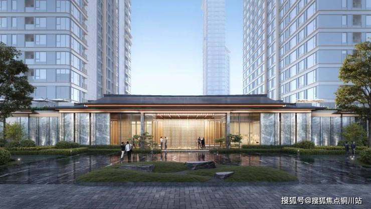 选取新中式建筑中的屋檐、廊柱等代表性符号,用现代设计语言和材料进行转译,提炼为立面设计的一系列设计语言。