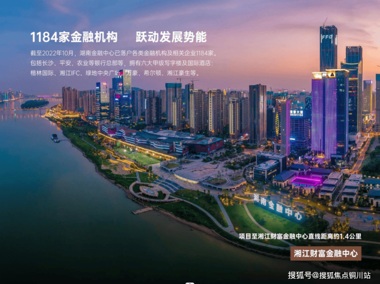 ⑤湖南金融中心:湖南金融中心已落户各类金融机构及相关企业1184家,包括长沙、平安、农业等银行总部,开源证券、东北证券、五矿证券等进驻。拥有六大甲级写字楼及国际酒店:楷林国际、湘江IFC、绿地中央广场、万豪、希尔顿、湘江豪生等。