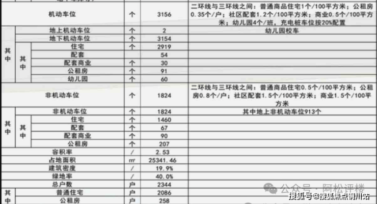 该项目容积率约2.53,共有约2344套房源,其中普通住宅约2086套,公租房约258套;共有约3156个机动车位,住宅车位约3154个,均为地下车位,其中公租房约207个车位,商品房车位配比约1:1.41。