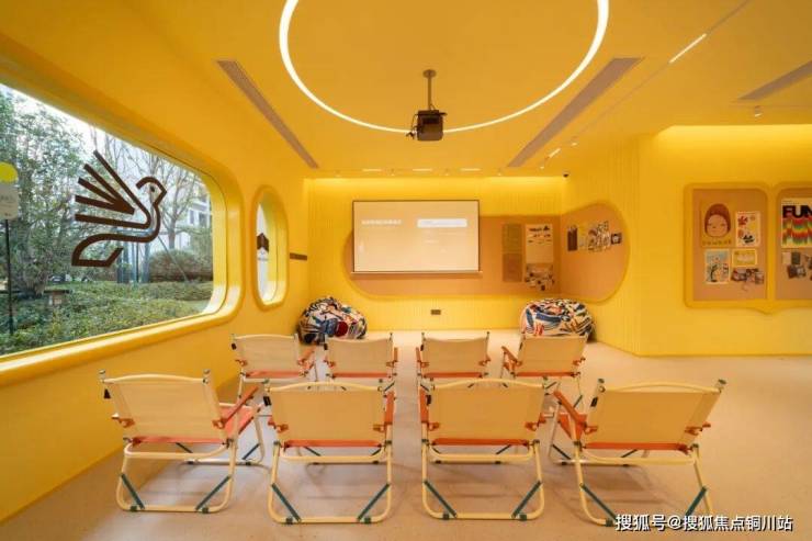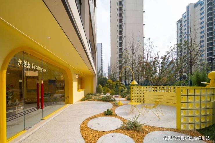 三期新交付区域打造约200㎡学习盒子(文聚盒)主题架空层,由室外花园区和室内阅读区组成,以明快的柠檬黄色调、开放式布局,构成室内外一体的融合场景。