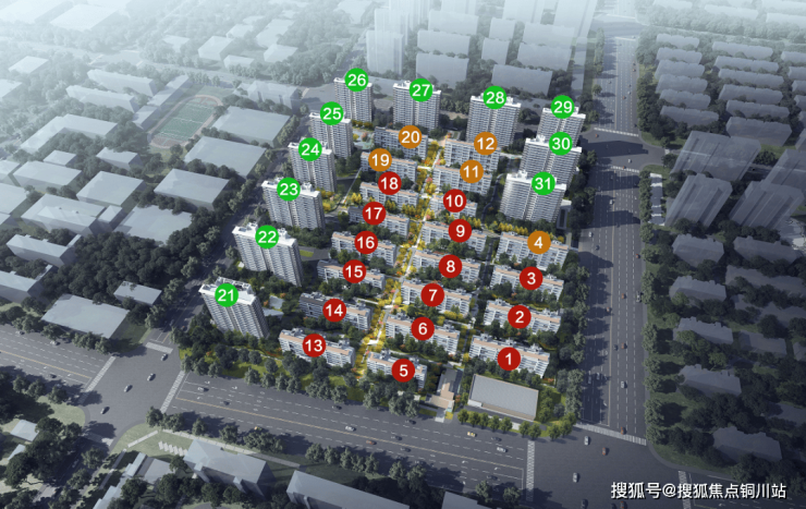 项目共规划31栋住宅产品,其中1#-3#、5#-10#,以及13#-18#均为6层叠加产品;4#、11#、12#、19#、20#、30#、31#为8层叠加产品;21#-31#为18层精装小高层。整个项目以6-8层的叠墅为主,居住密度低,居住体验感更佳。