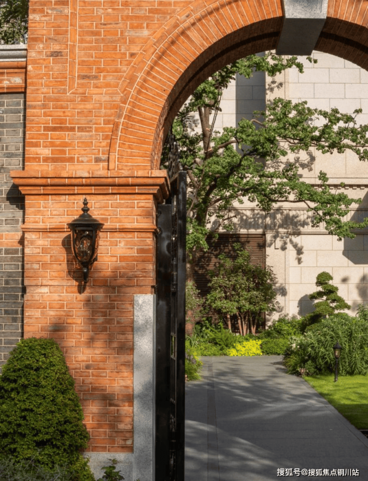 弘安里新组团风貌别墅,采用大面青砖、局部红砖腰线与仿木铝合金门窗的立面做法,延续人字形山墙的形制,屋面承袭传统小青瓦工艺,更新老虎窗。在1.1的容积率下,优化组团关系与建筑的巷弄与檐口的比例,越弘安里入口的过街门楼,踏入巷门,拾步院门,由园入院,沉浸四季的花园之境。