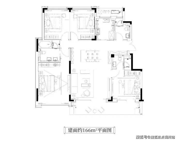 建面约166㎡户型,是我认为同级舒适度最高的户型。