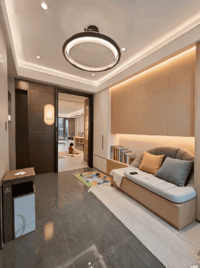 比如:装上智能监控,外卖、快递可直接暂放于此,无需频繁开门,居家安全和隐私性得到保障;定制顶天立地的鞋柜、收纳柜,换季鞋子、行李箱、清洁工具都能“藏”进去,家里再也不会乱糟糟;更便利的是,柜体空间甚至足以容纳自行车、婴儿车,乃至露营帐篷、折叠桌椅等大件物品,避免堆积在客厅或阳台,让家时刻井然有序;还可摆放绿植,营造入户小景;或者做一面洞洞板、木质挂钩墙,随手挂钥匙、包包、儿童书包,实用性和颜值都在线。