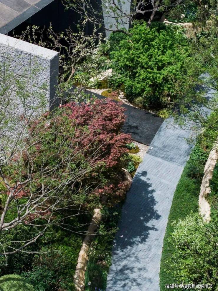 林木不追求花哨品种,只强调成片成林的真实感;绿植拒绝过度修剪,保留着自然生长、互相渗透的痕迹;铺装也不刻意工整对缝,而是让工人依审美与现场感知自由发挥,反而成就一种粗放的高级野趣。