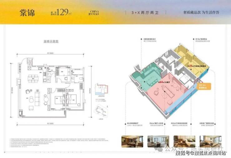 南北双观湖,3+X房两厅两卫,63㎡的LDKG设计,6.2米横厅,25㎡全景270°观湖主卧套房,9.2米跑步阳台连通次卧。