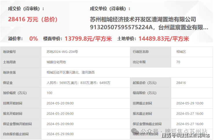 满园,即漕湖置地元和4号地块项目,位于相城区经开区康元路北、澄月路西,由漕湖置地&蓝宸置业&旭辉建管以底价28416万元竞得,成交楼面价为13800元/㎡。