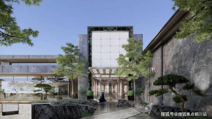 三进制空间礼序,制院落层层递进.起·城市会客厅—62.5米超尺度门庭演绎城市封面,承·诗意过渡带—双曲面廊桥串联光影叙事,转·静谧水苑境—玻璃盒子悬浮于镜水之上,合·归心私享域—退台建筑勾勒天际轮廓。四重空间序列暗合传统园林"渐入佳境"的造园智慧。