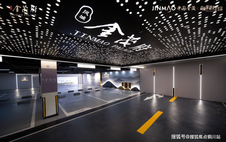 地下车库的地面使用橘皮环氧地坪,顶部通过穿孔铝板+暖光灯营造出了璀璨奢华的艺术格栅吊顶,带来赏心悦目的归家仪式感。