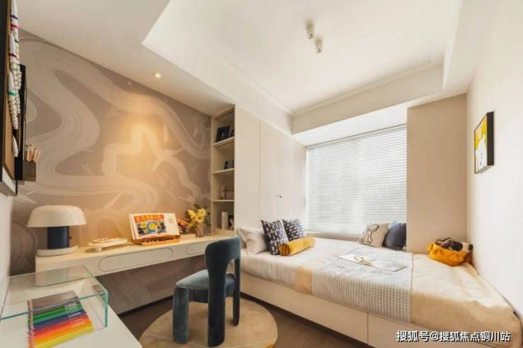 儿童房空间阔绰,经过科学规划,可轻松实现睡眠、学习、娱乐、收纳四大功能区的合理布局。宽敞的居中区域保证了活动路线的流畅与安全,既能满足孩子好动的天性,也为未来的成长变化预留了充足的改造弹性。
