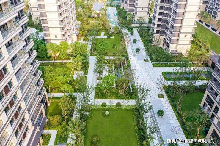 以“山为骨、水为脉、绿为肤”构建两环·两轴·八景的景观体系,花木搭配错落有致,植被、草坪、灌木、大乔木等铺陈出曲径通幽的空间体验,穿插丰富的功能区,涵盖多重功能的生活场景,赋予生活更多社交互动休闲空间。