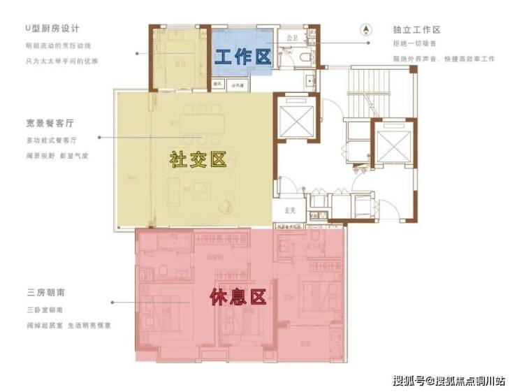 全卧室朝南布局,双套房设计足以满足全龄段的居住需求。