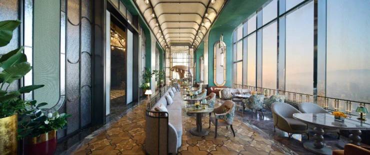 从上至下,这座垂直立体城市综合体分成4种业态。云端处是奢华酒店的顶流——丽思卡尔顿,位于67-79层,预计2028年正式开业。