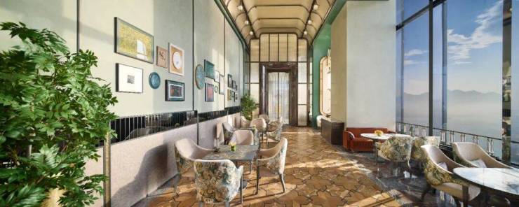 为了打造这件世界级作品,绿城邀约全球设计天团共襄盛举。如世界第一高楼哈利法塔的设计者SOM,打造了上海K11、杭州中心等地标商业的Lead8,日本国宝级园林大师小林政彦,英国皇家豪邸御用设计团队1508 LONDON、操刀浦东丽思卡尔顿、杭州四季酒店等众多奢华酒店室内精装的Burega farnell,世界超高层灯光顾问bpi等等。低调奢华的空中会客厅则出自AB Concept的手笔,大量使用了瓯绣、瓯窑等温州元素作为装饰,极为惊艳。