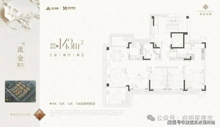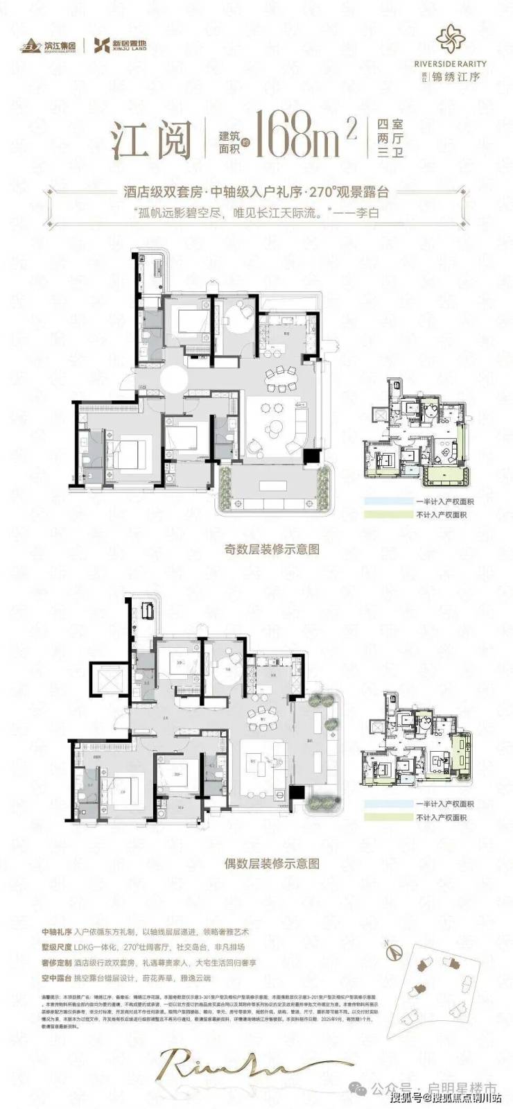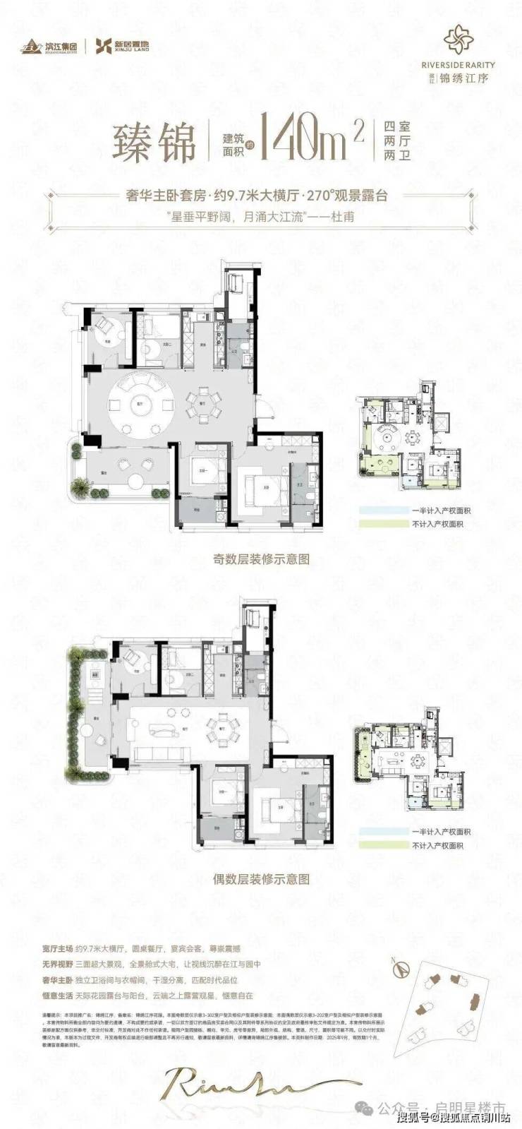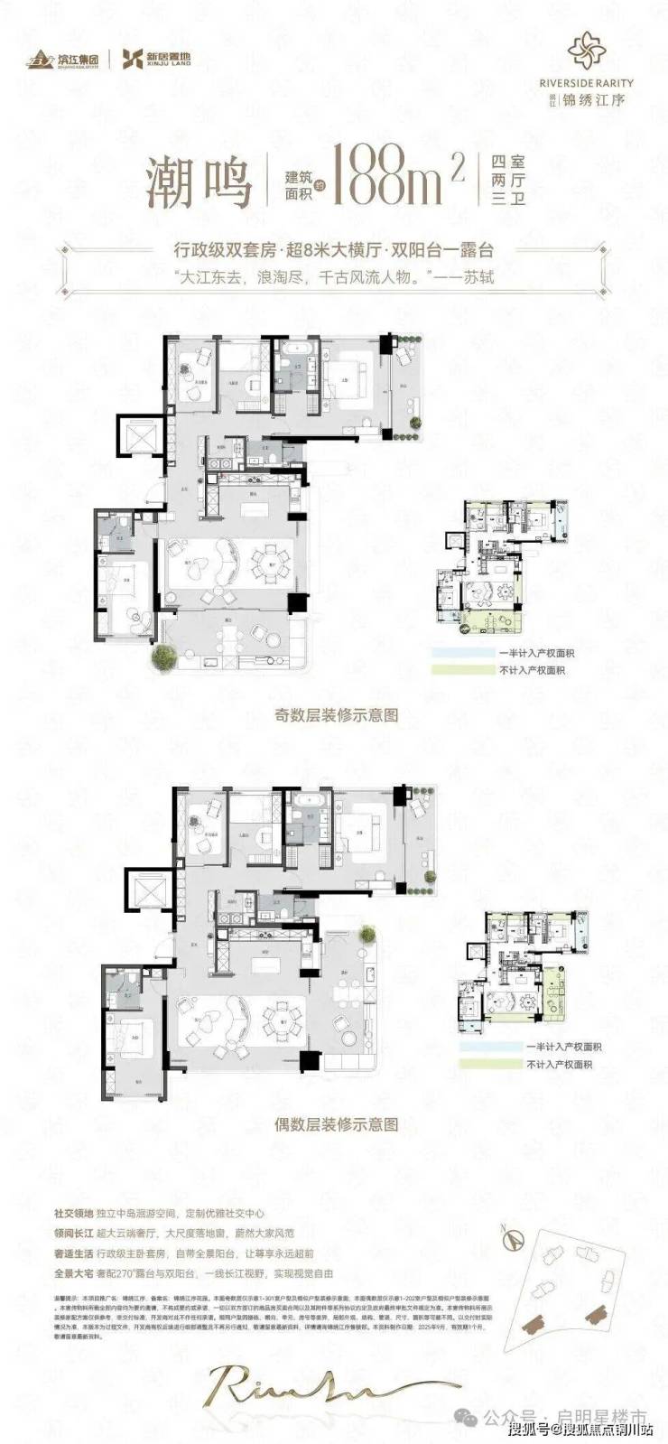 项目位于江核小鱼嘴板块,打造为6栋高层住宅,主打滨江大平层,户型面积段为140-188㎡,有三恒科技系统,配有下沉式会所和6栋架空层泛会所。