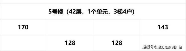 国铁城投国樾滨江已推出3号楼,5号楼为44层,1个单元,3梯4户,分布户型为建面约128-170平户型。