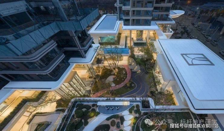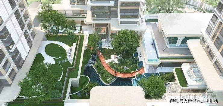 会所内院通过“架空抬板+首层架空+下沉庭院“,营造山川、溪流、栈桥、浮岛等立体垂直微景观,创造建筑与景观的无界交融。立体的浮岛和空间的延伸,串联起多元的温柔「小尺度空间」。