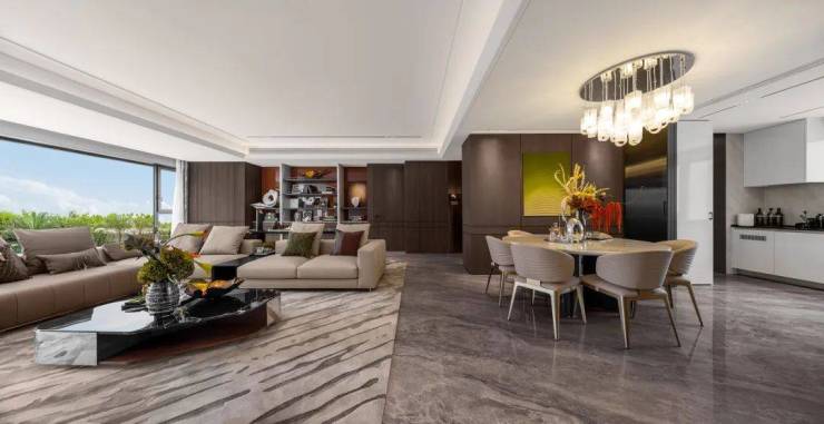 餐客厅一体化+超大横厅设计,无疑是整个大平层的核心亮点。一踏入这个空间,便能感受到它带来的强烈视觉冲击感。