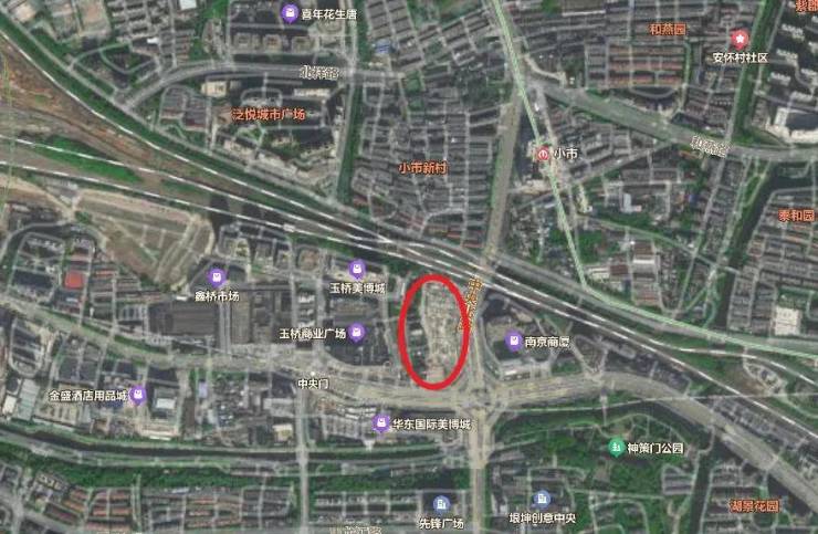 中央路以西地块,在中央北路和建宁路交汇处,被玉桥商业广场和南京商厦左右围住。