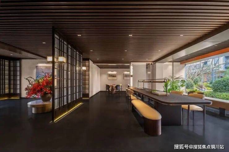 西侧宽约百米的的酒店式门庭,百万级的迎客松,以苍翠温润的力量感,续写着时间的故事。迪奥米黄景墙的细腻肌理,以东方隔景智慧,轻柔地划分内外。
