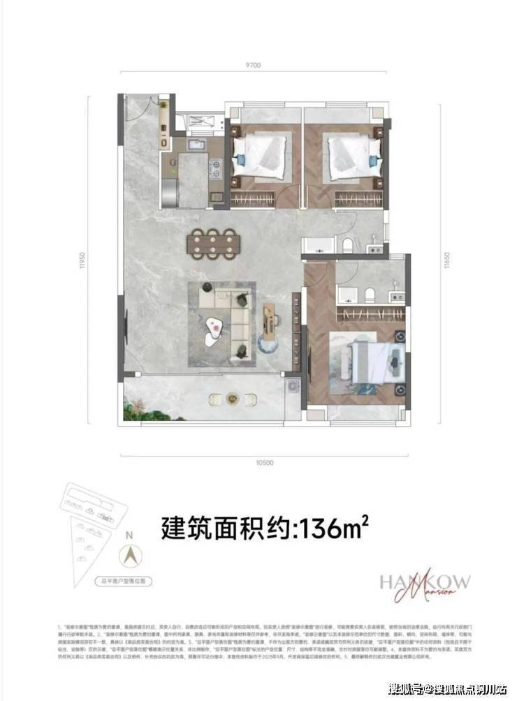 内边户解析:136平3房2厅2卫。严格来说只能算两开间朝南,但是客厅尺度不错,有横厅的设计,实物会显得客厅很大,客厅还包了一个“书房”进来。比较遗憾的是只有主卧朝南,2个次卧朝北。优势是客厅尺度在133的面积段来说会非常显大,且通透性非常好。劣势就是2个次卧朝北。