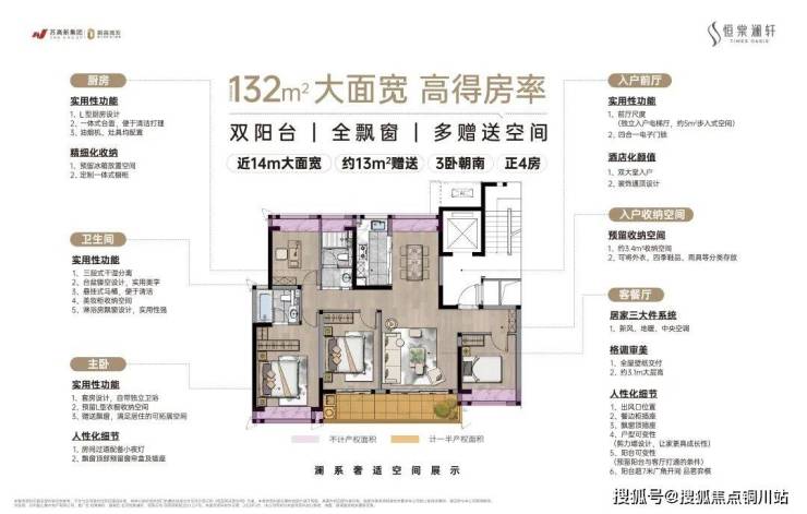 我们来看建面约132平的户型,3步换代生活设计,解决居住痛点,卷哭了其他140㎡以上的4房产品。