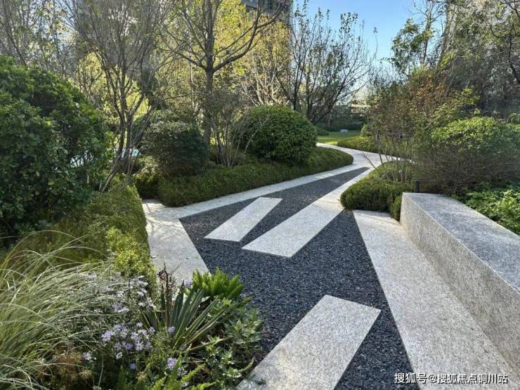 仔细看,才发现这条漫步道是由浪花白花岗岩铺设而成,而并非大部分楼盘选用的仿石砖。