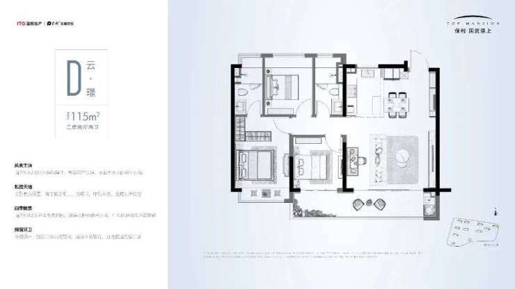 △建面约115㎡的三房两卫户型,约5.25米的大横厅搭配约8.25米的南向双阳台,加上多飘窗配置,改善属性拉满。