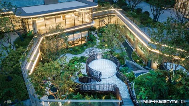 大大小小的圆弧型景观和观景平台,通过弧形阶梯,将园区、下沉式庭院和建面约2300㎡双会所贯通为一体。