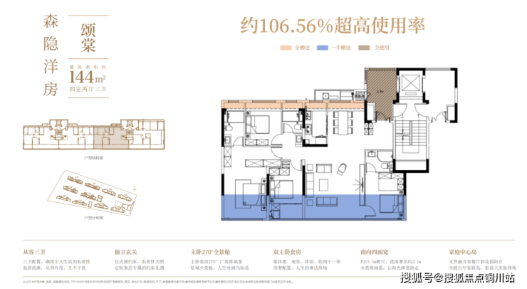 铂森隐庐项目户型建筑面积约229-125平方米,这里以144平方米洋房户型为例,业主实用面积超过了150平方米,这就是计容新规后最佳实践,业主的每一分钱都花在了自己身上。