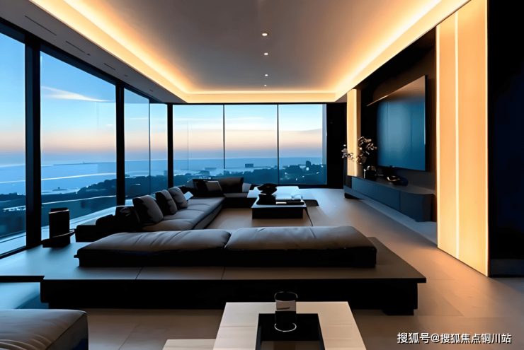 172平方米户型客厅视野无比开阔,拥有两面落地采光玻璃,我们在网上找了一张示意图,这个简直太爱了!