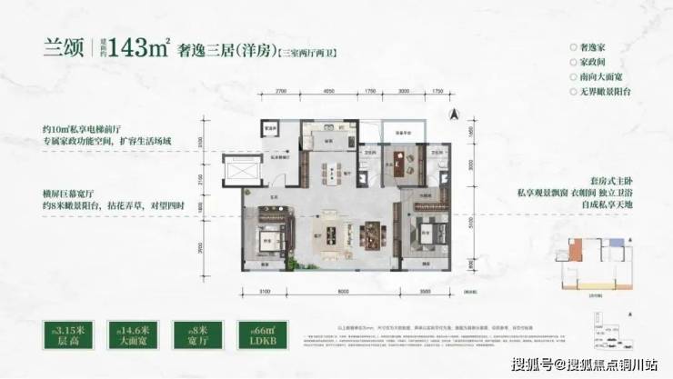 海通·桂语兰庭颠覆城阳传统户型设计规范,约3.05米小高层、约3.15米洋房,较常规住宅极大提升垂直尺度,打造全龄段奢阔空间。