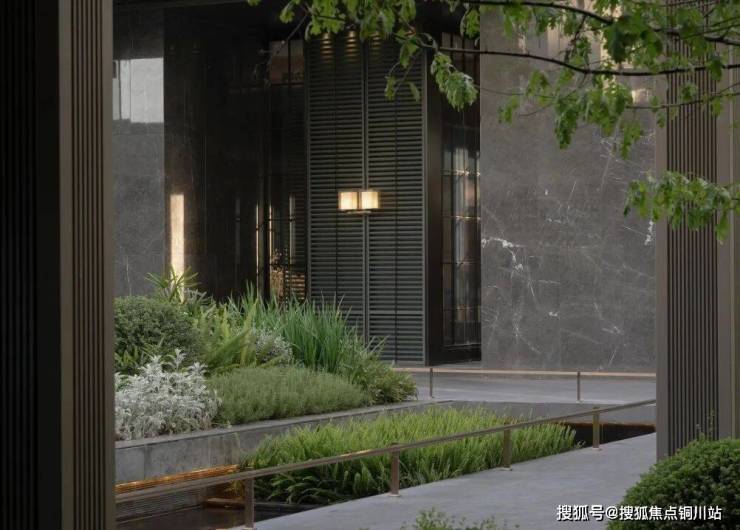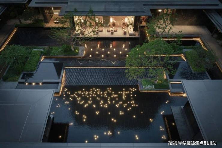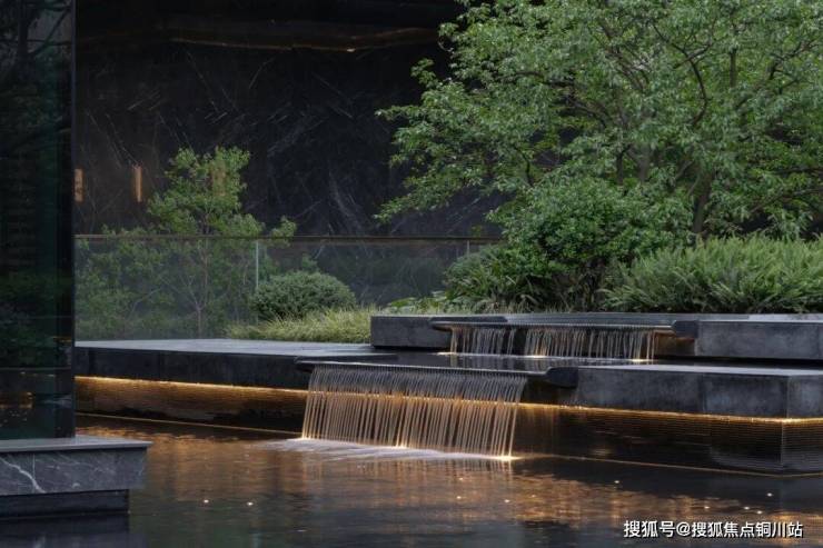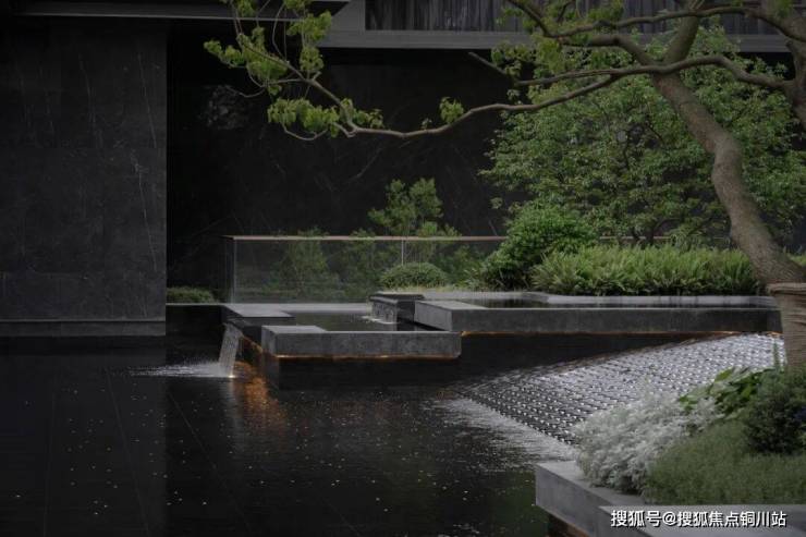 在有限的内庭院中塑造人工高差的半山半水,营造柔软的景观视线屏障,打造园境水院内盒。收放自如的空间形态,给人应对自如的自由形态,功能、绿意、水景,所有自然质感无界交融,形成一种高级的生活智慧。