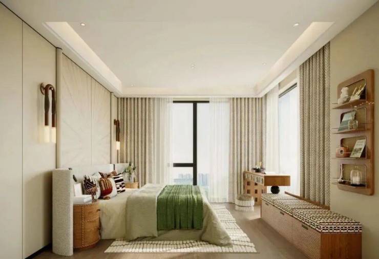 约25平的主卧套房,不仅有270°的窗外视野,还有带窗的衣帽间、卫生间,空间“松弛”的同时,还保证了功能性的充足、视野的开阔,打造了极致舒适度。