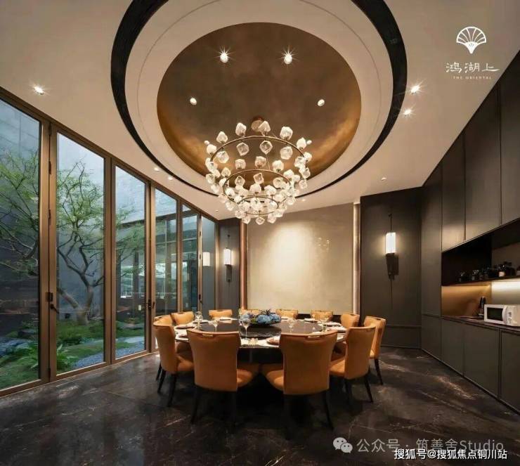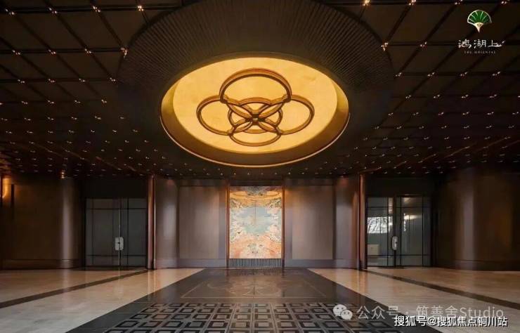 门庭中心以天圆地方造型点睛,配以大块亚马逊绿石材,形成“由隐入奢”的视觉过渡,无需知识储备,都能感受到身份认同。
