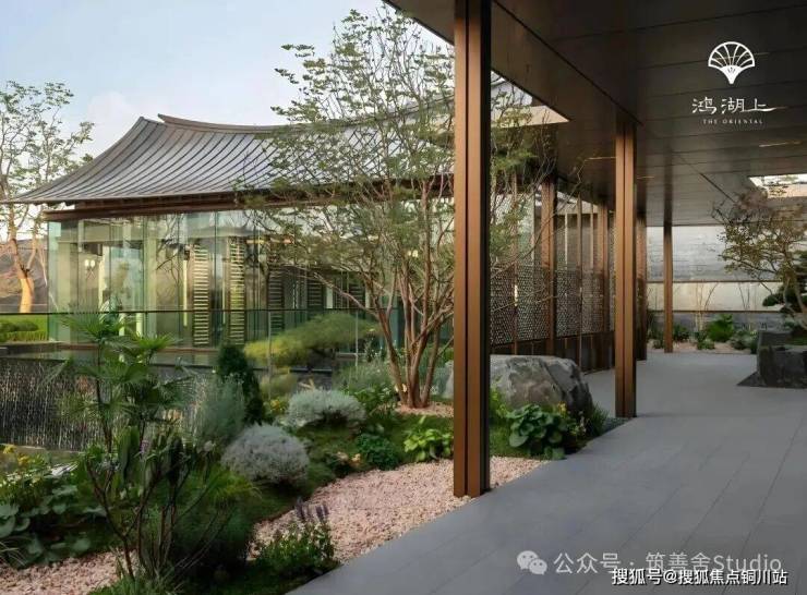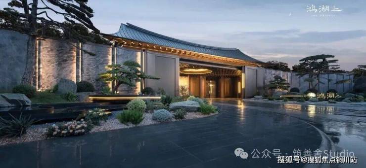 鸿湖上以宋风为魂,并非简单复制建筑形制,而是萃取宋韵精髓,打造区域内独一宋风低密墅居。其一,合院立面率先突破同质化,当板块多数项目仍停留在真石漆、铝条阶段时,鸿湖上已选用石材、铝板等高端材质,实现品质与品味的双重超越。其二,于细节处彰显原汁原味的宋式美学,格栅线条勾勒雅致轮廓,宋式飞檐尽显风雅气韵,处处流露东方神韵。