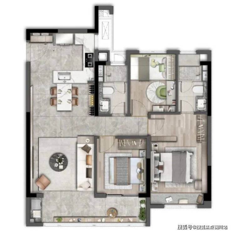 主卧星级套房设计,约3.85米超大面宽 ,区域内同面积段户型中私密与尊享兼备。