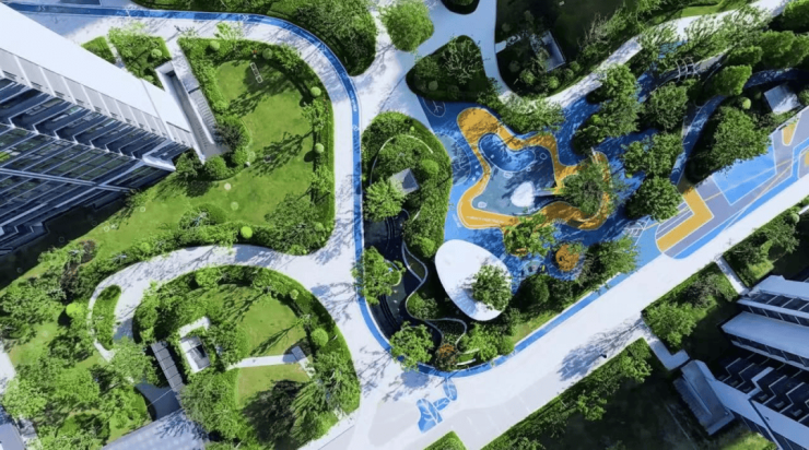 从空中俯瞰,体现出大社区好处,开发商有更多的空间精心规划花园区、水景区、散步区、健身区、儿童区……各个区域功能游刃有余地散布在小区中,合理又美观,不会局促。