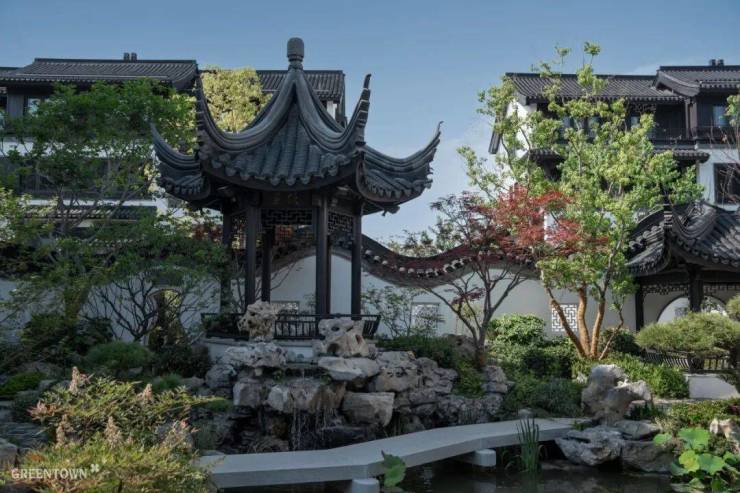 步入园林内部,目之所及,何处不风景:约300方中央水景、角亭、波浪云墙、折角、月洞门……我们仿佛回到了那个“天下之盛扬为首”的时代,回到了那座名传千古的何园,绿城将专业造园实力与考究审美标准彻底展现。