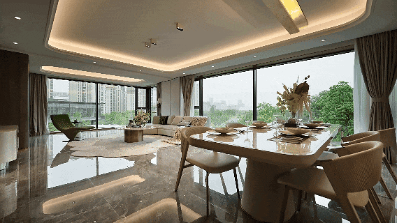 “0公摊”的家让每一平米都服务于生活本真,超70㎡的阔绰横厅让家庭欢聚自由舒展;270°极幕观景,千万级的高尔夫风光360°环绕,解锁无界的空间诗意;国际一线精装细节于细微处彰显品质,私厅入户则勾勒出归家的仪式序曲。在这里,建筑不仅是容器,更是生活的延伸。