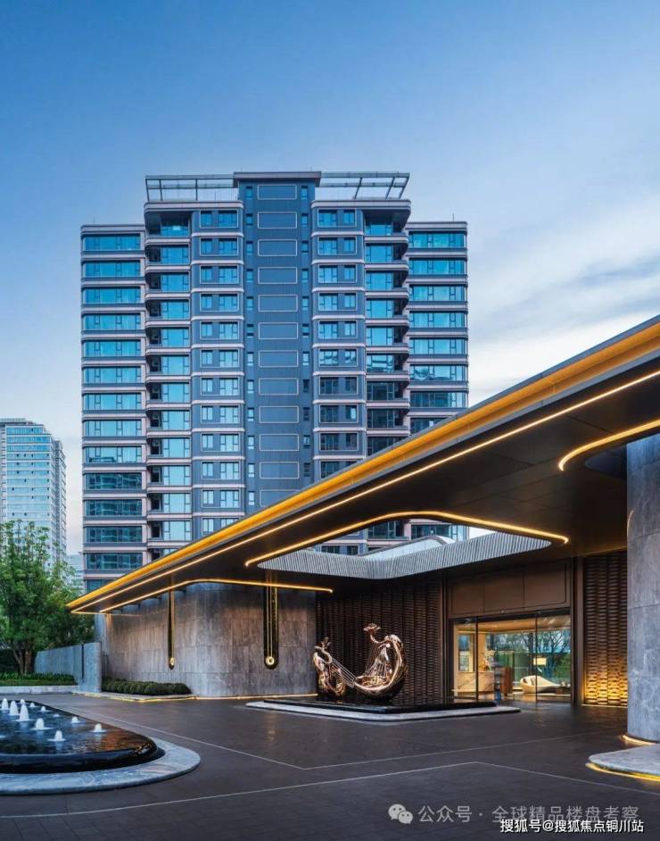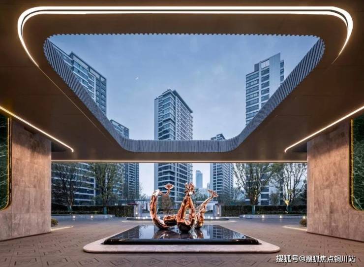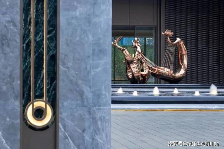 社区主入口通过30余棵香樟树层层引渡,以华樟绿林勾勒出大气奢华的黄金海岸,营造静谧隐贵入园之境。金属雕塑、定制材料、整石奢石的应用,将海洋生活美学的人居观融入其中。