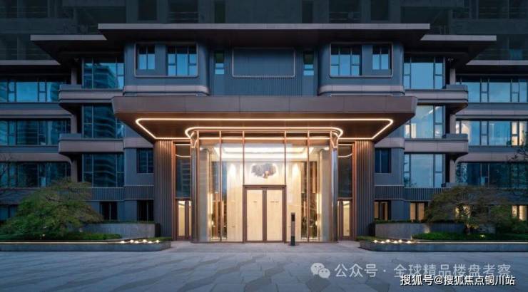 主入口两侧的迎宾景墙以鱼肚灰亚光面整石配以PRADA绿奢石、青玉切面、金属线条,部分点缀以鸢尾花金属logo,将“高奢美学”与“尊崇体验”融入社区空间,打造非凡气度。