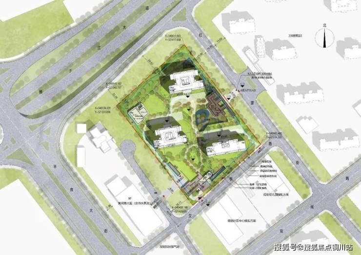 项目规划以三栋点式错落分布,通过每栋楼每户看江视线角度的分析,为每栋楼提供瞰江视野,将一线江景利用最大化。同时集中场地有限的景观用地,打造下沉庭院景观。
