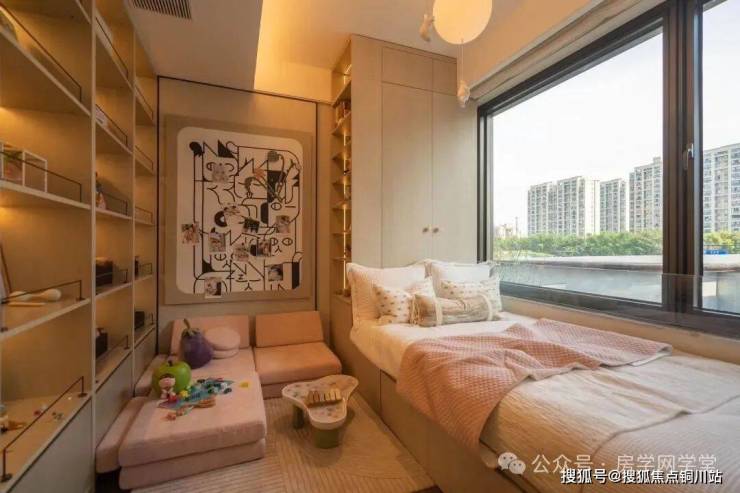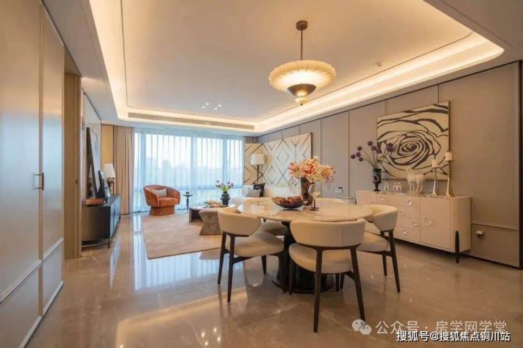 绿城·湖映金沙具备高辨识度,基础底色是大面积玻璃+四面铝板,这在下沙也是独一份。高层公建化立面勾勒极简美学,大面积开窗纳湖光入室,层叠线条随光影起伏,似湖波律动,如油画框般定格风景,点缀金镶玉嵌的美感,镌刻出海派风尚的大湖流金之美。
