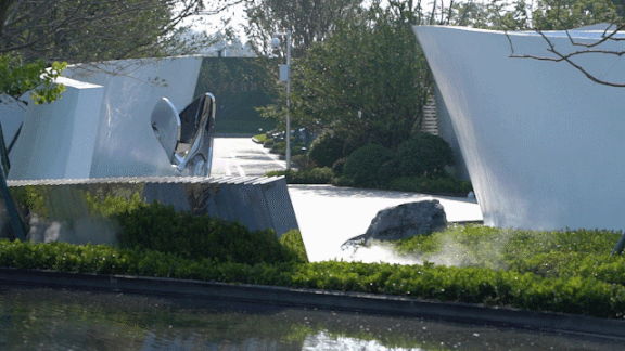 拟山仿谷的夹道,山水环绕,浮光叠影间是可以拥有的恬静夏日,就像,这片扭转的光影雕塑。