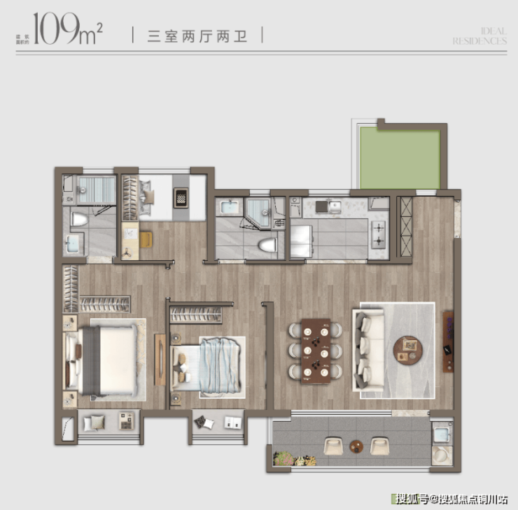 约109㎡通透阔境,南向三开间格局,约5.4m奢适横厅,外接宽景阳台,通透明媚;雍容主卧,配备独立卫浴,呵护主人隐私,奢华品位不彰自显;全优三房,生活面面俱到,从容随心。