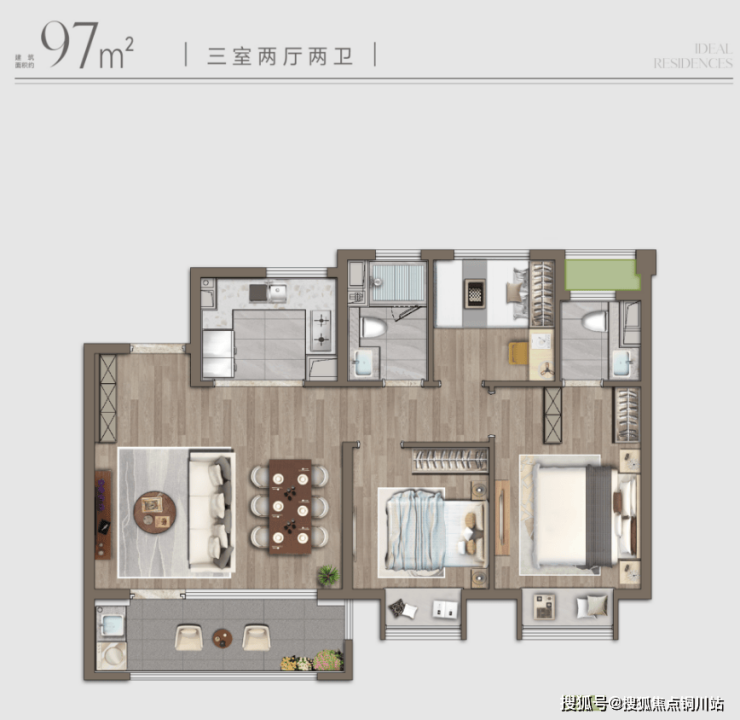 约97㎡全明舒居,呈现约11m南向大面宽,空间方正通透,清风阳光流连;约5.1m横厅设计,宽阔空间格局,居家待客,从容有序;主卧套房,独立卫生间,宽敞之余,尽享私密。