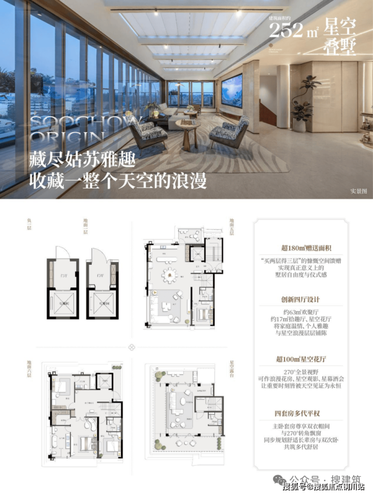 星空花厅创新:超100㎡顶层空间,搭配270°全景视野,突破传统屋顶局限,创造星空下的浪漫生活场景。