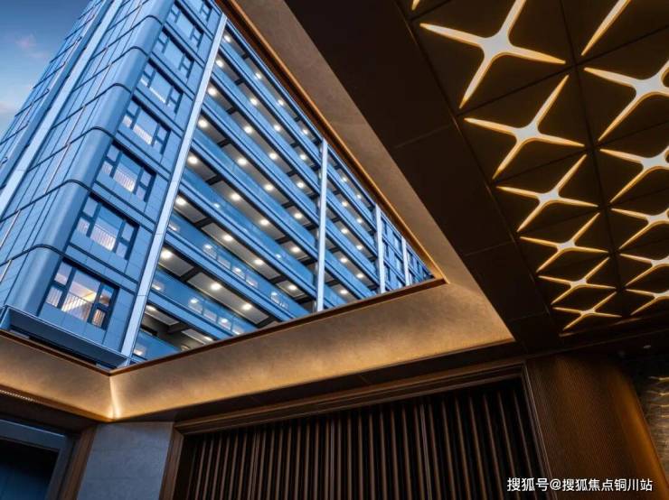 高奢酒店般的入户门厅,舒展的海鸥翼线条、香槟金铝板格栅、超白玻大幅落地玻璃,与温暖的灯光一起,给你的回家之路洒满星光。