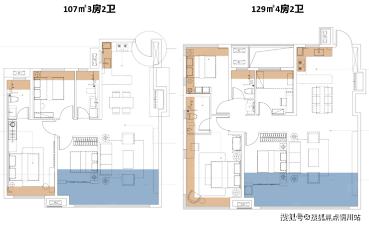 二期主推建面约 107㎡三房、129㎡四房两大迭代户型,在一期基础上深度优化,实现 “更大面宽、更高得房率、更强拓展性”,重新定义区域改善标准。